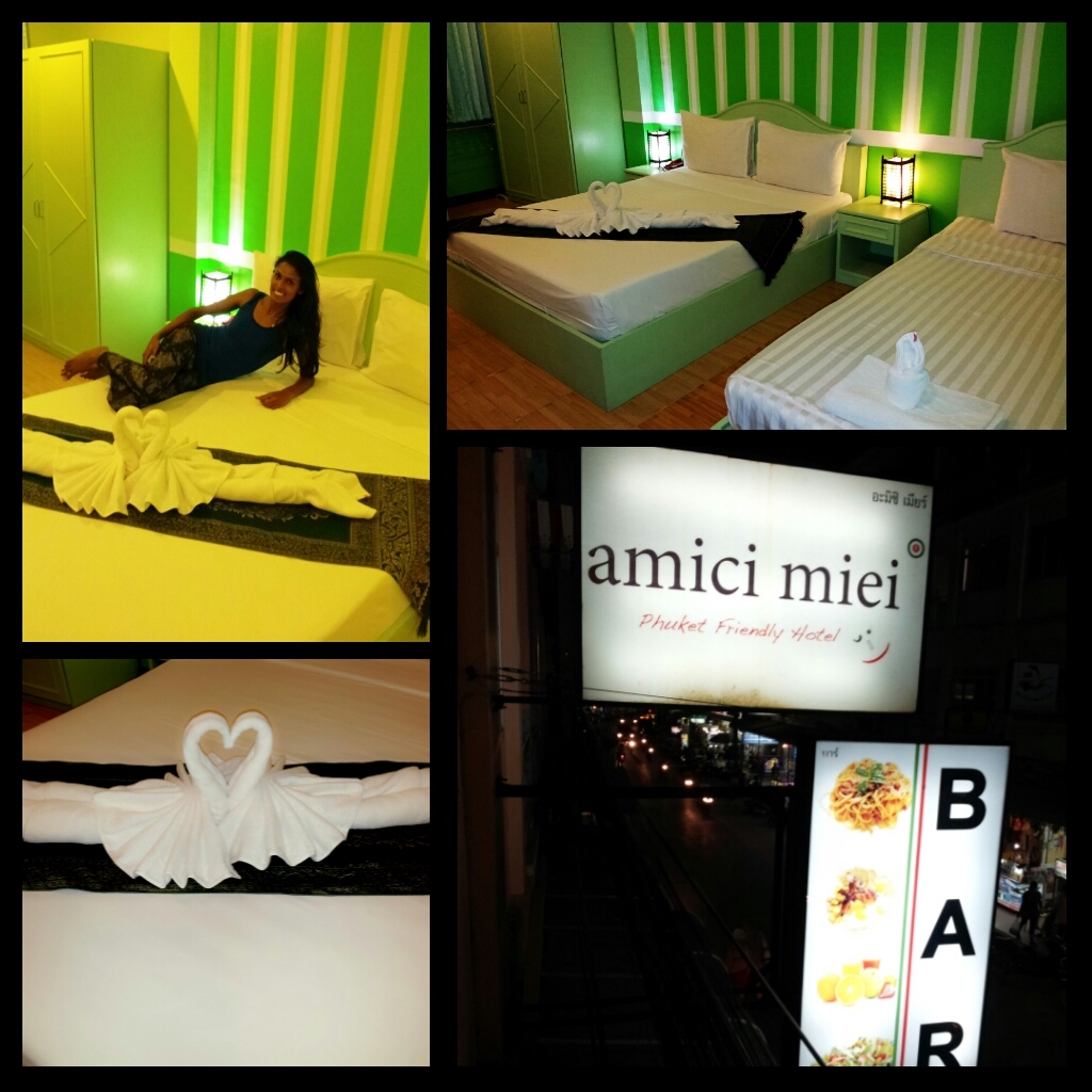 We took taxi to our Hotel near Patong. Our hotel name is Amici Miei and i had already informed them that we were gonna arrive late via email. Enough of the stress part, now let me tell you bout all the fun thing in Phuket! Our hotel Amici Miei was fantastic!. The rooms on 3rd floor is huge and comfy!. Theres only 3 room and we booked all 3 for 8 of us. I would suggest this hotel if u wanna go Phuket. The staffs were also friendly. The concept of the hotel is Italian as the owner is Italian.